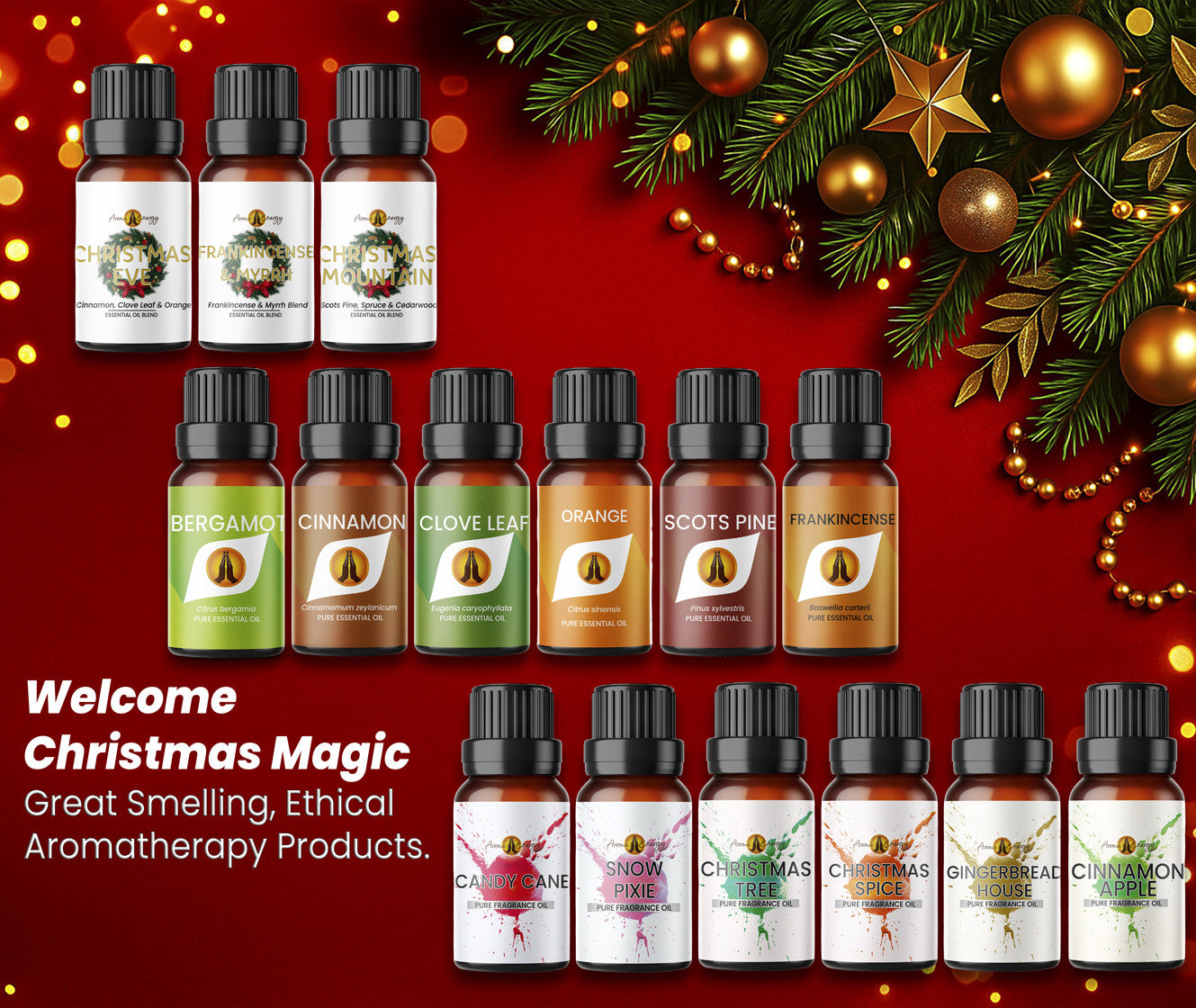 Explore our handpicked collection of Christmas Fragrance Oils, Essential Oils, Candles, and Sprays. From warm spices to festive fruits and cosy winter aromas, this seasonal range makes it easy to find your perfect Christmas scent. All in one place – quick to browse, simple to shop.