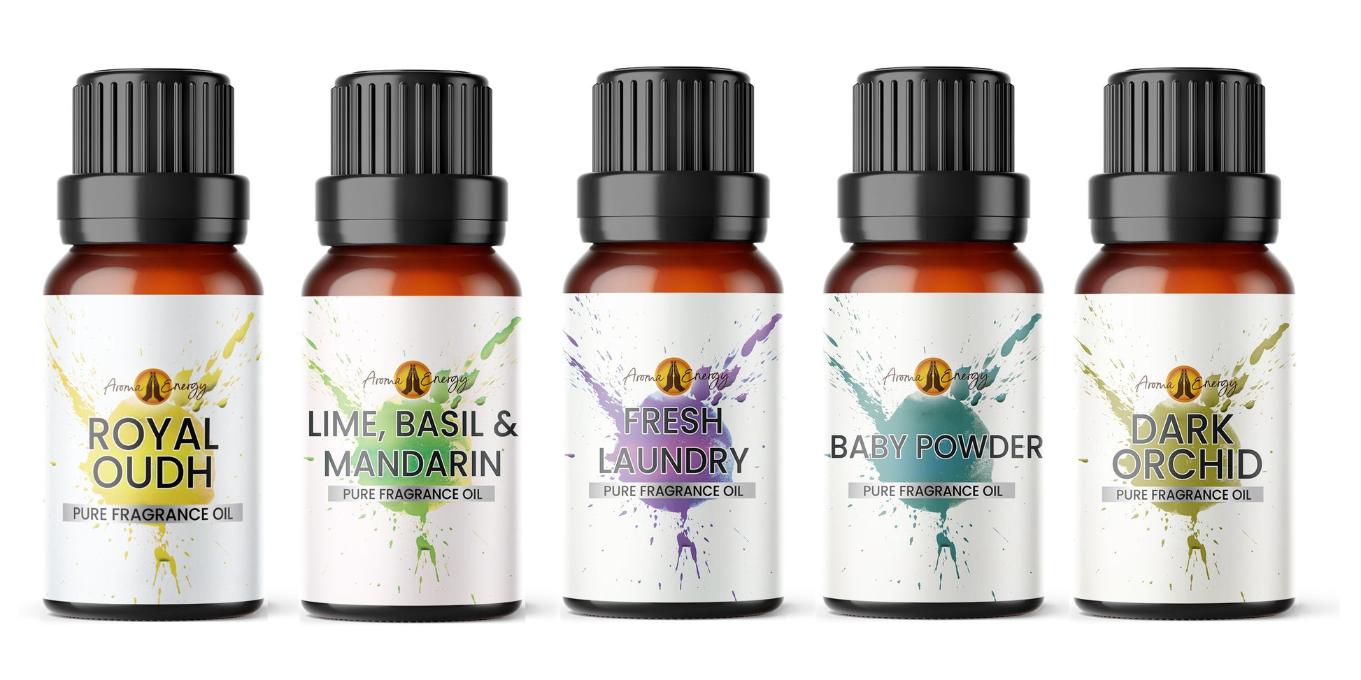 This Set comes with five 10ml bottles of different high quality pure candle making fragrance oils.